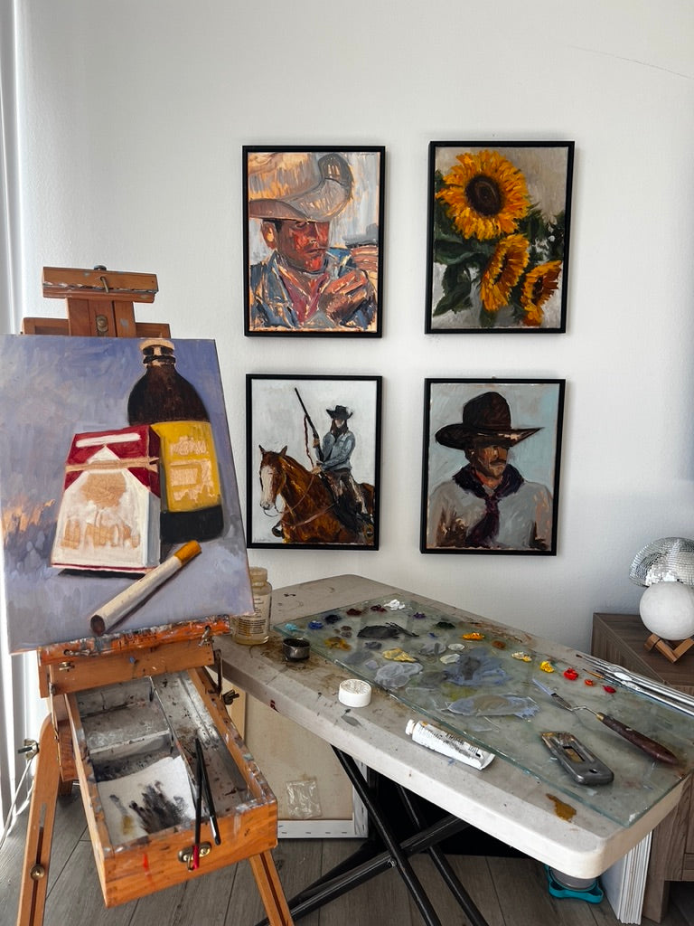 A vibrant study in golden yellows and rich earth tones. Sunflowers No. 2 captures the raw beauty and warmth of late summer blooms through bold, expressive brushwork and a muted, textured background.